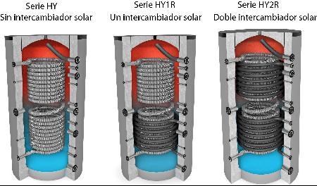 Acumuladores de agua con producción higiénica de ACS: - Sin intercambiador - Con 1 intercambiador - Con 2 intercambiadores