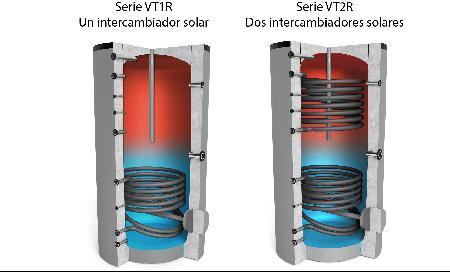 Acumuladores vitrificados para producción de ACS: - Con 1 Intercambiador. - Con 2 Intercambiadores. - Con 2 Intercambiadores especial bomba de calor.